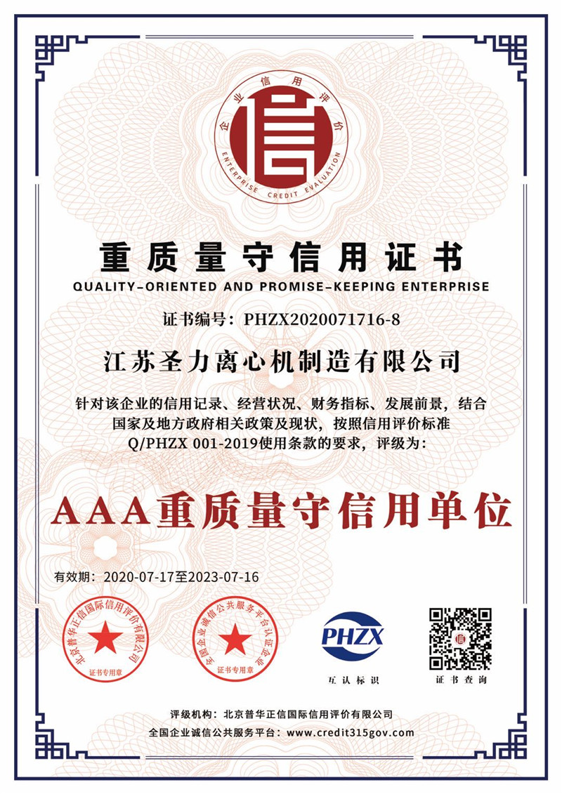 江蘇圣力離心機(jī)制造有限公司是國內(nèi)分離機(jī)械行業(yè)中主要的離心機(jī)生產(chǎn)企業(yè),對離心機(jī)的研究、設(shè)計、制造有多年的歷史,擁有齊全的設(shè)備、完善的檢測手段。公司已通過IS09000國際質(zhì)量體系認(rèn)證、ISO14001環(huán)境管理體系認(rèn)證、ISO45001:2018職業(yè)健康安全管理體系認(rèn)證和CE認(rèn)證,是江蘇省高新技術(shù)企業(yè),曾榮獲國家和地方多項榮譽稱號。